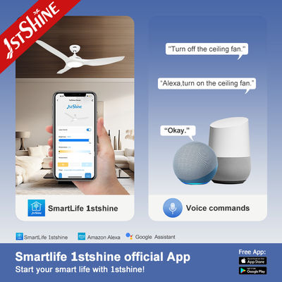 ROHS ৫২ ইঞ্চি সাদা লো নয়েজ বৃহৎ এয়ারফ্লো সিলিং ফ্যান এলইডি পাঁচটি গতি রিমোট কন্ট্রোল
